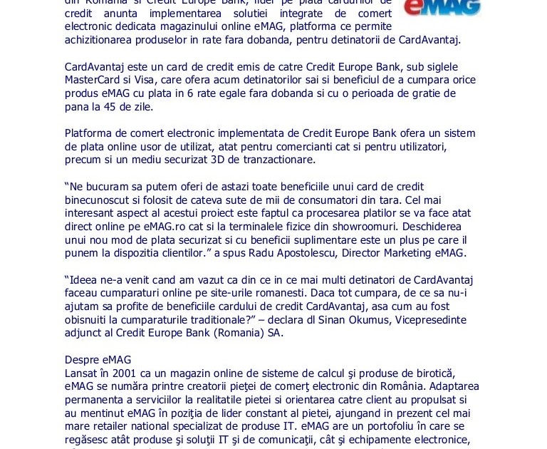 Mai mult decât atât, în cadrul programului de restructurări, la începutul anului 2008, ceb nv a achiziţionat credit europe bank (elveţia) sa şi credit europe bank (românia) s.a. Oferă tuturor celor interesați o gamă variată de produse și servicii, cum ar fi: Credit europe bank (romania) s.a. Si ca ati inclinat balanta in ceea ce priveste legea reechilibrarii contractelor, care va merge vineri la vot (vom veni cu o postare separata in care va vom. The following banks operating under credit europe brand name has been recently closed down